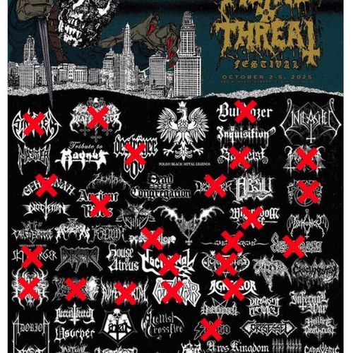 Визовая политика США привела к беспрецедентному количеству срывов фестивалей. Одним группам отказывают из-за «пропаганды сатанизма», другие постили в соцсетях мемы с Трампом, кто-то не одолел разросшуюся бюрократическую волокиту, кому-то просто не дают концертных виз без объяснения причин. Как выглядит, например, афиша чикагского блэкерского феста Metal Threat Festival смотрите на фото ниже. И это с учётом того, что львиная доля перечисленных команд исповедует близкую трамповской администрации ультраправую идеологию. Что уже говорить о «тёмной» сцене, где счёт «забаненных» музыкантов идёт на десятки. В ту же копилку: на днях стало известно об отмене курируемого Nine Inch Nails фестиваля кинокомпозиторов Future Ruins, о котором мы рассказывали весной. В своём заявлении Трент Резнор и Аттикус Росс расплывчато ссылаются на «ряд сложностей и проблем с логистикой». Расстроенные американцы шутят в сети, что «хватит с нас и Кид Рока», и что «жили же как-то при Кромвеле и ничего» (во времена пуританского протектората Кромвеля в Англии вся музыка в общественных местах была запрещена — прим. ред.).