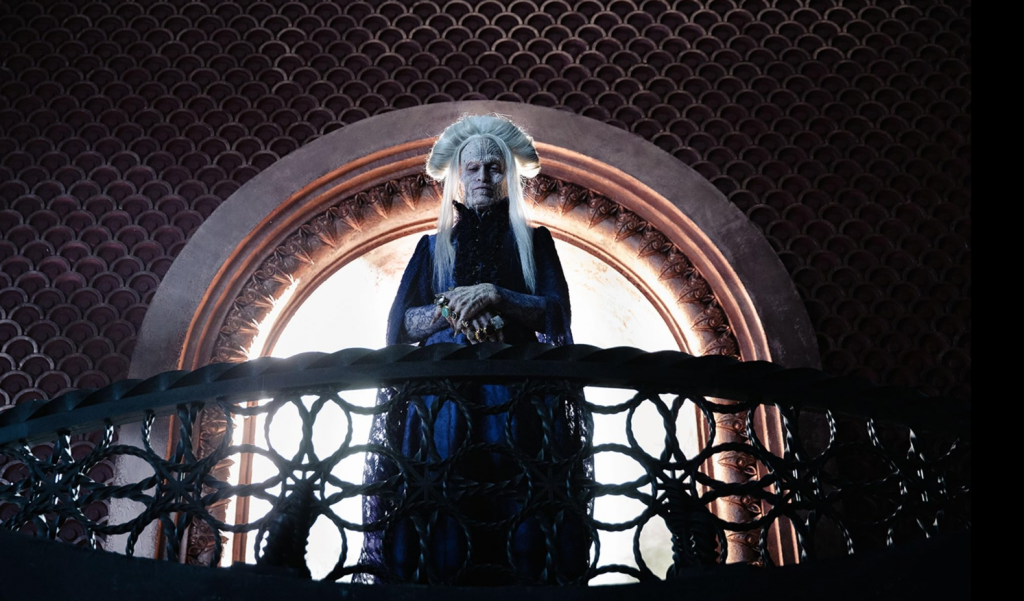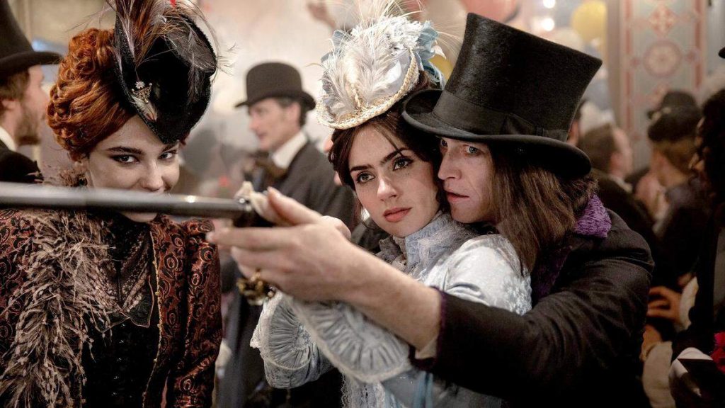 Актерский состав. Естественно, это было ожидаемо, все тащат на себе Калеб Лэндри Джонс и Кристоф Вальц. Акцент, конечно же, на Лэндри — и он его выдерживает. Он одинаково притягивает к себе все внимание и в “живой” ипостаси Графа, бросающего вызов Богу, и в разных амплуа во время странствий Графа, и в виде живого трупа в парике (оставшегося, очевидно, со времен “Пятого элемента”), и как блистательный денди викторианской эпохи.